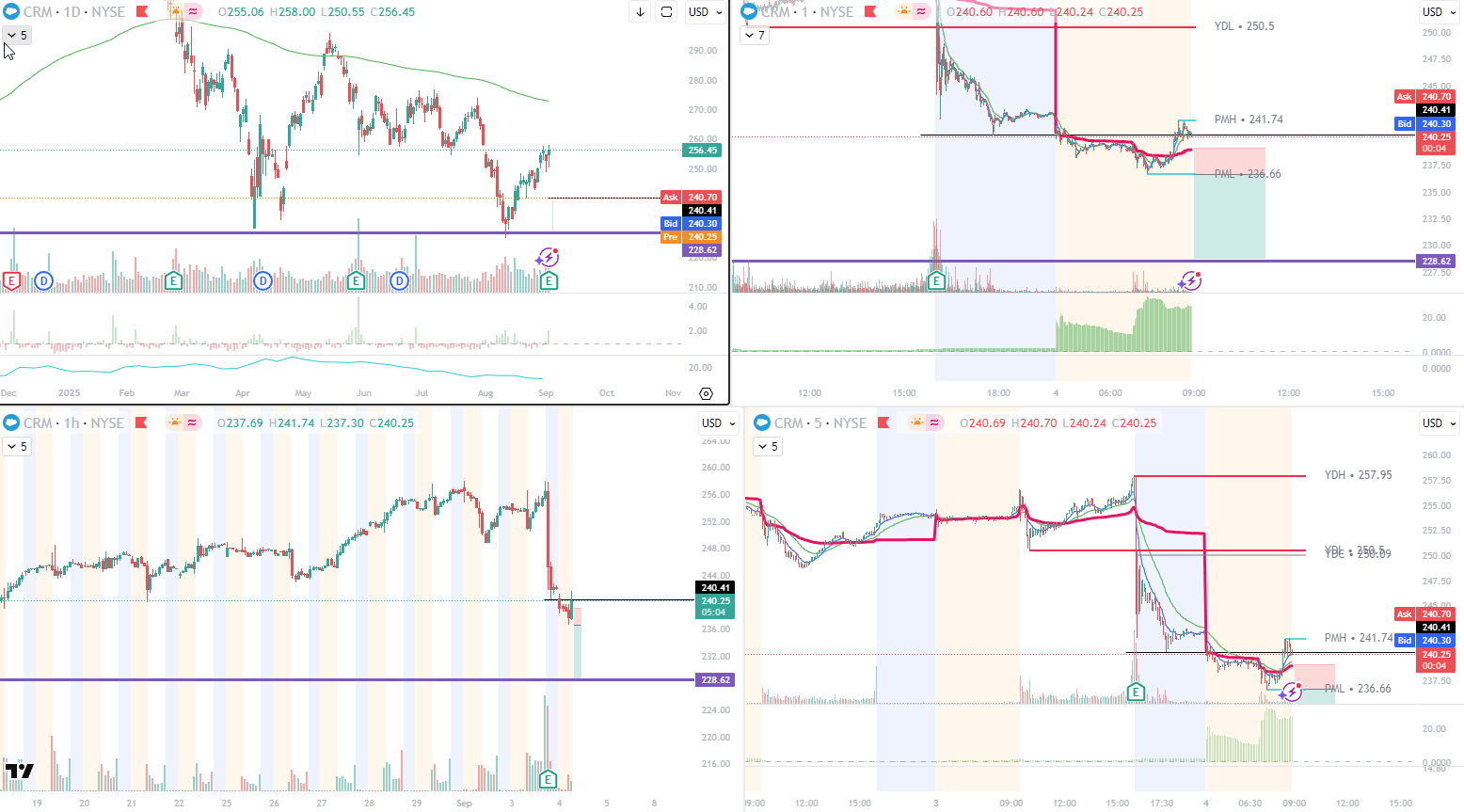 What I am watching: Earnings play. Sold off over 6% watching the PML price as well as VWAP to see if we are going lower, or is price makes a rebound. If we can break premarket low, there is room down to 228.