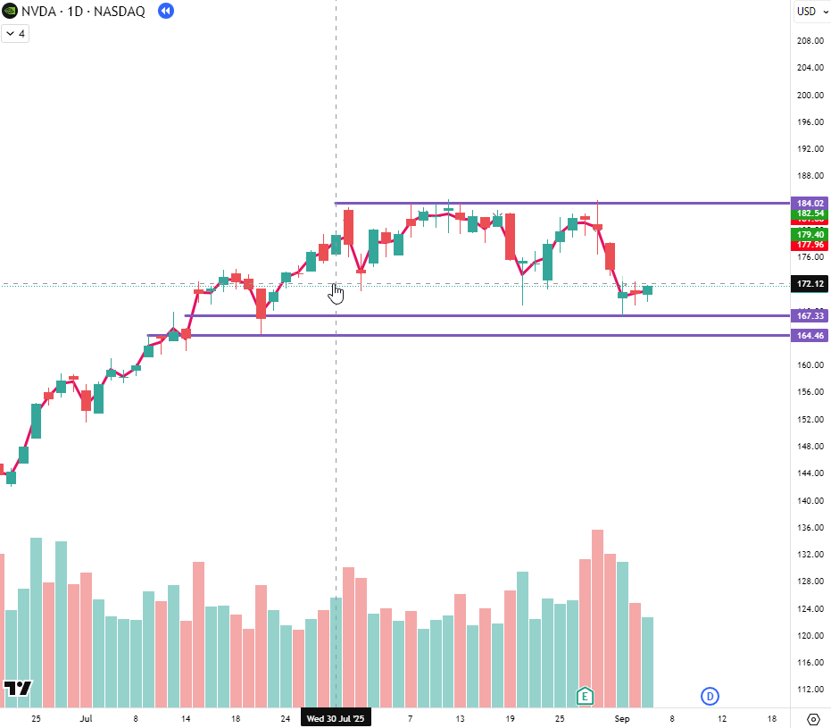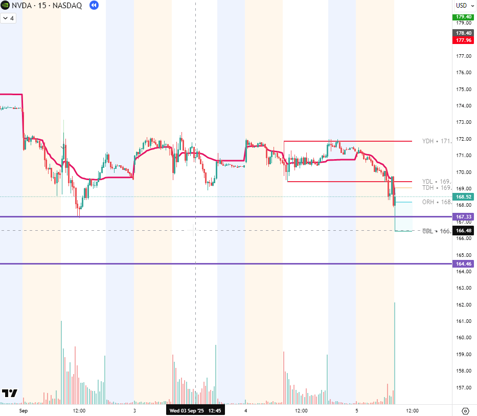 Trade Thesis: NVDA was showing relative weakness at the open. AMD was also selling off on news and NVDA could have been seen as a sympathy play.