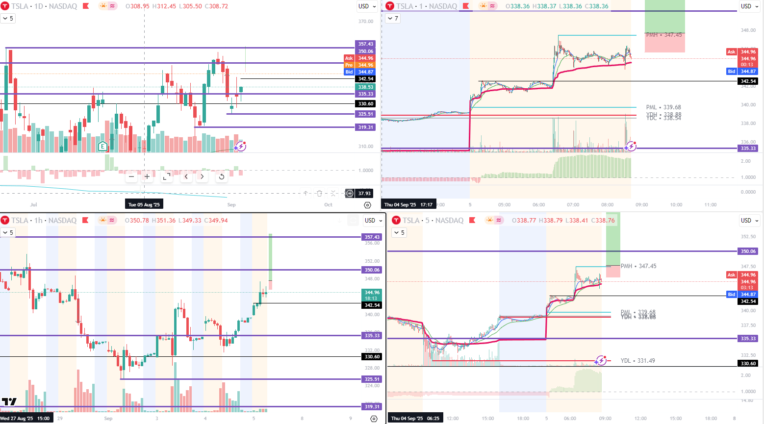 What I am watching: We are continuing to get the HTF direction right on TSLA, but have trouble being part of the move. Same thesis as we have had the last couple of days. Look for a move back up to 355ish. It looks strong, but dont really like the gap on the daily too much, so being a little not to chase too early.