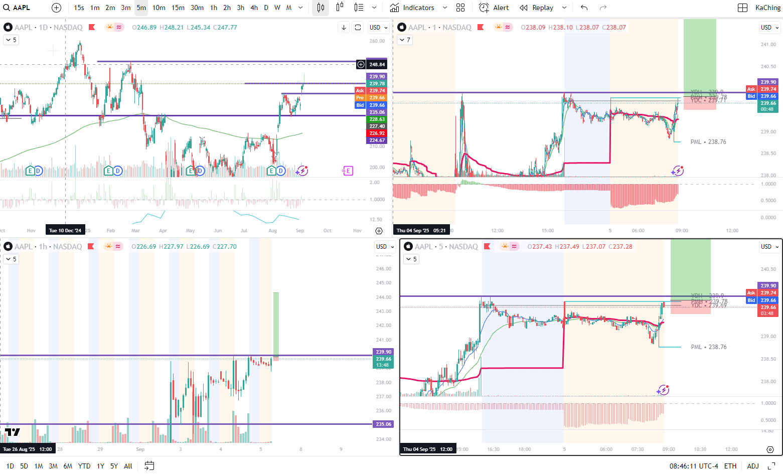 Execution(1 min): There were multiple confluences that make this a good setup. We were below PDL, VWAP and the 167 level. There was a nice retest of the 5 min ORB. Looking to take partials at LOD and the 164.45 key level.