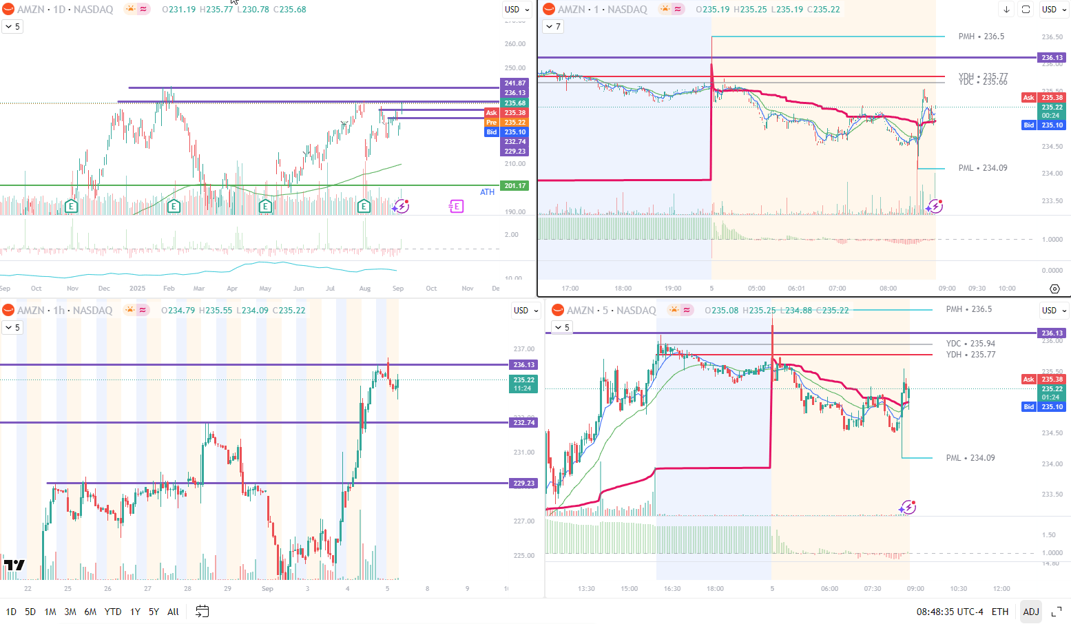 What I am watching: Nice move into the close yesterday and hovering at the top of the multiday consolidation range. Watching for a break of PDH/PMH/PDC for a move higher. This is a good setup as there are lots of confluences. Would also look to take this as an opening drive if we can get momentum off the open.