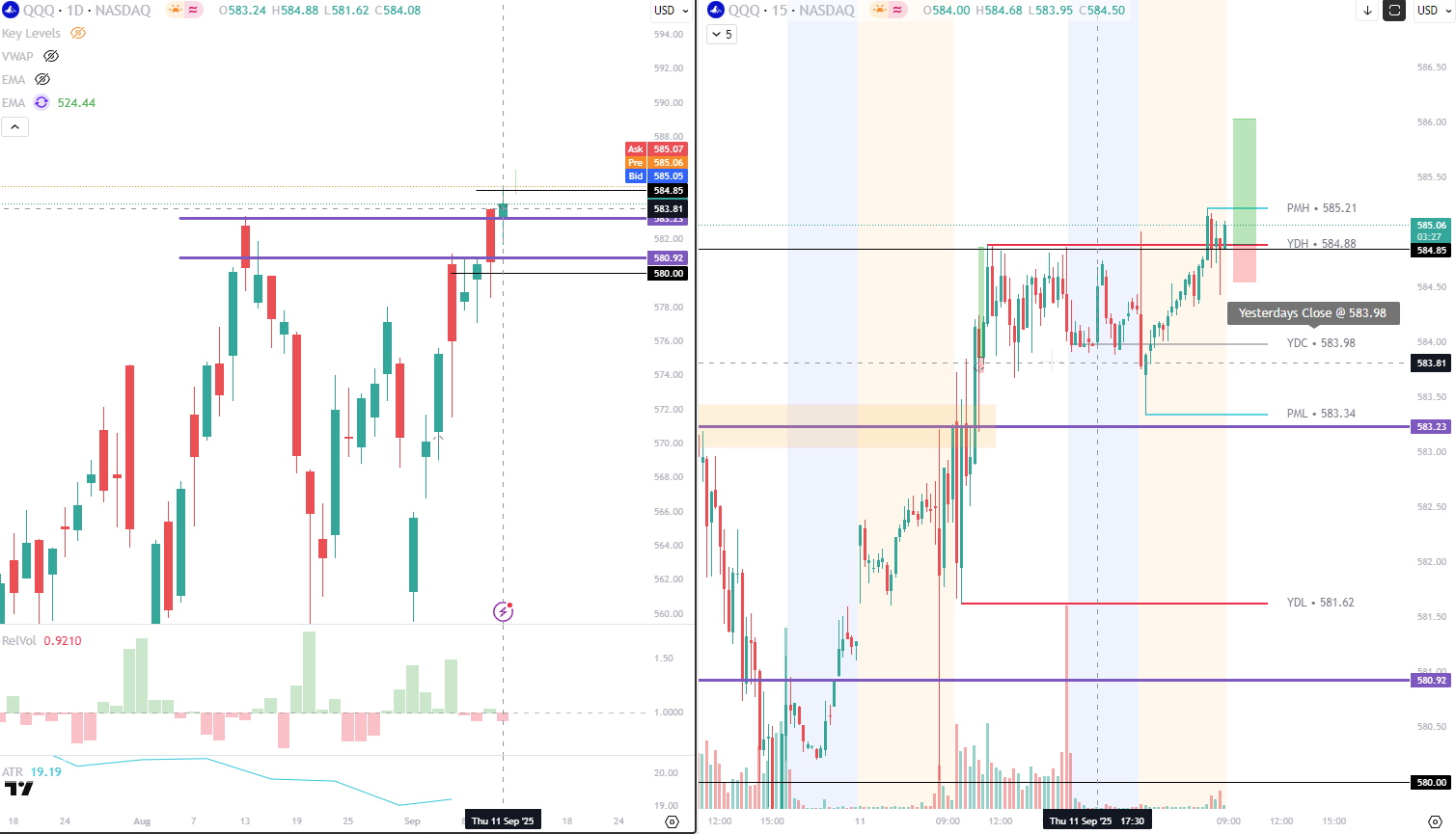 What I am watching: PDH and premarket high are both in play today. If there is no clear targets on other names would consider taking a trade on QQQ if we can have a nice retest of the PDH level.