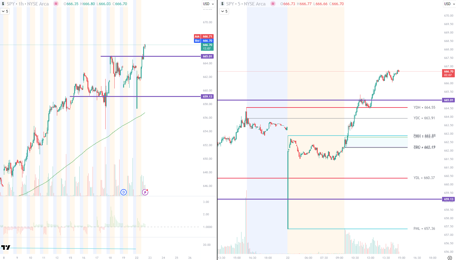 What I am watching: Price has been consolidating at the highs. This remains bullish. even thought here is a slight gap down coming into the market open. Watching the PDL as a level to see if we can hold. Then looking at 659. If we break and hold below then can start looking at shorts, but until then focus on strength.
