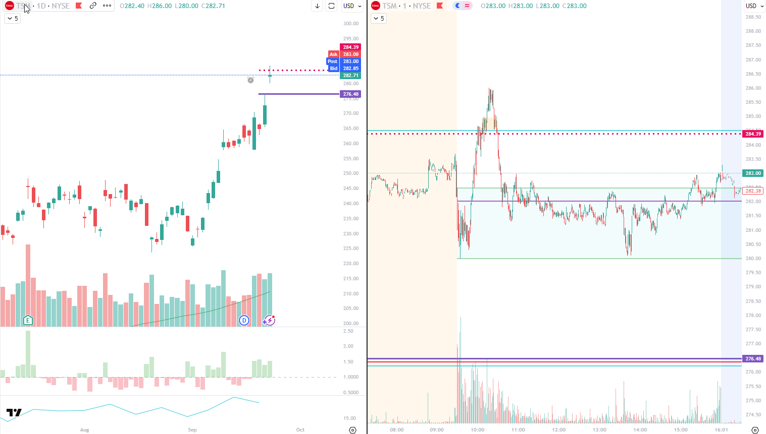 Trade Thesis: AMD was gapping down in the premarket was below PDL and also had a level of support that needed to hold. Was watching the HTF level for a breakdown for a possible multi day short to the downside.