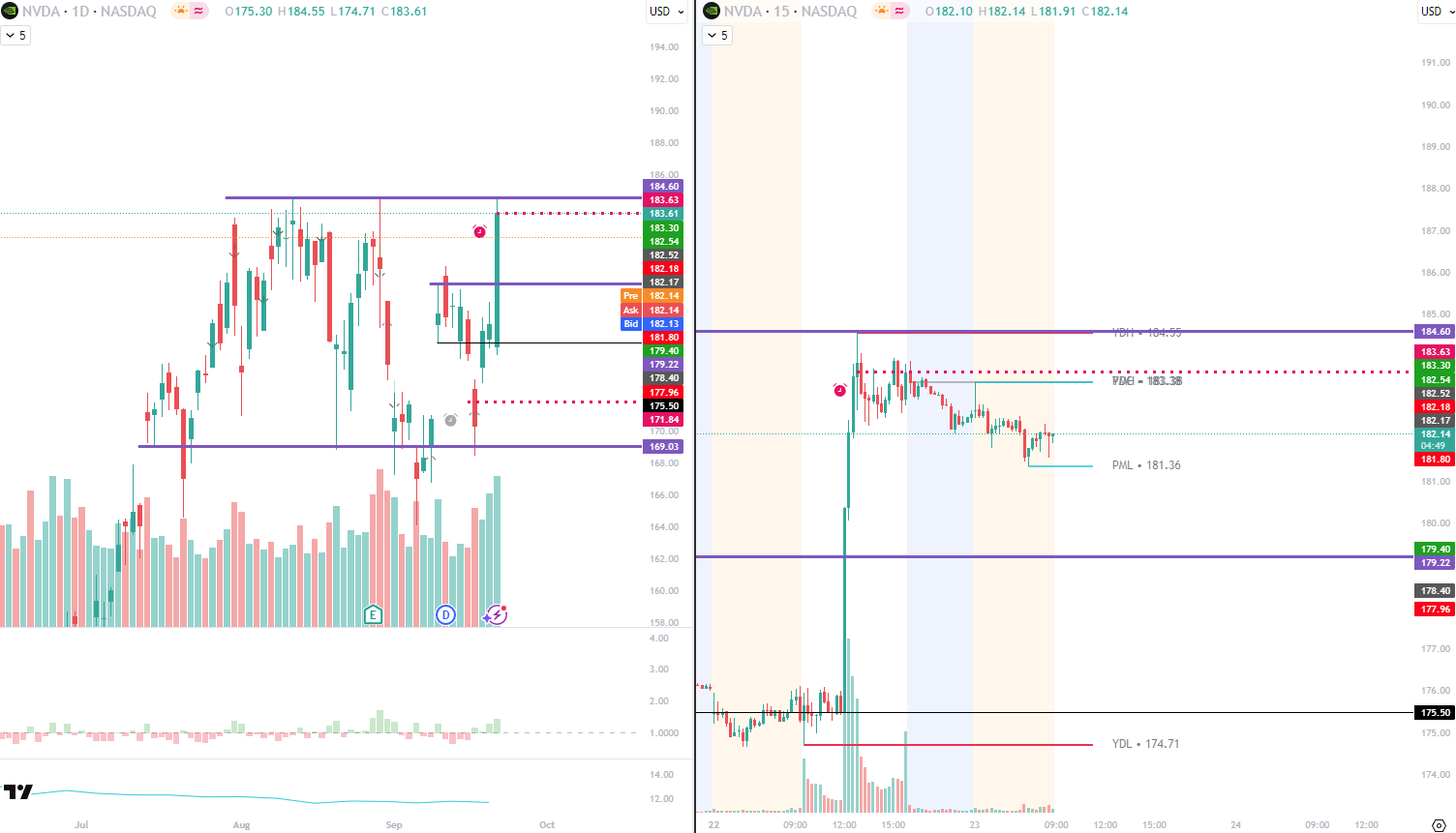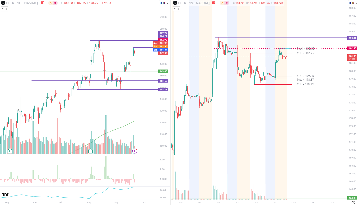 What I am watching: Above PDH we are in play with ATH at 190. Also looking at the PMH level at 184 above.