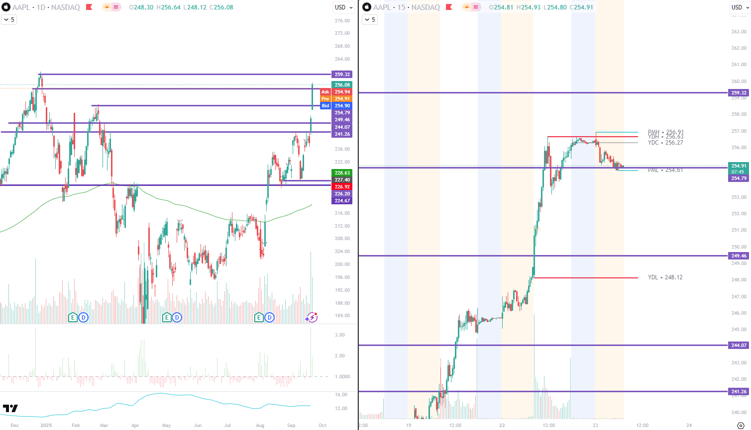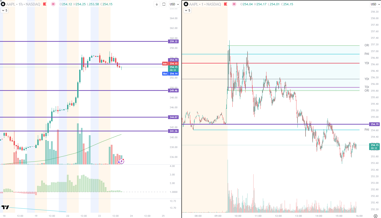 What I am watching: Staing on watch above PDH. Alert level set above this level. Dont chase this but also watch 259.32 above. If this gets hit before a PB all trades are off.