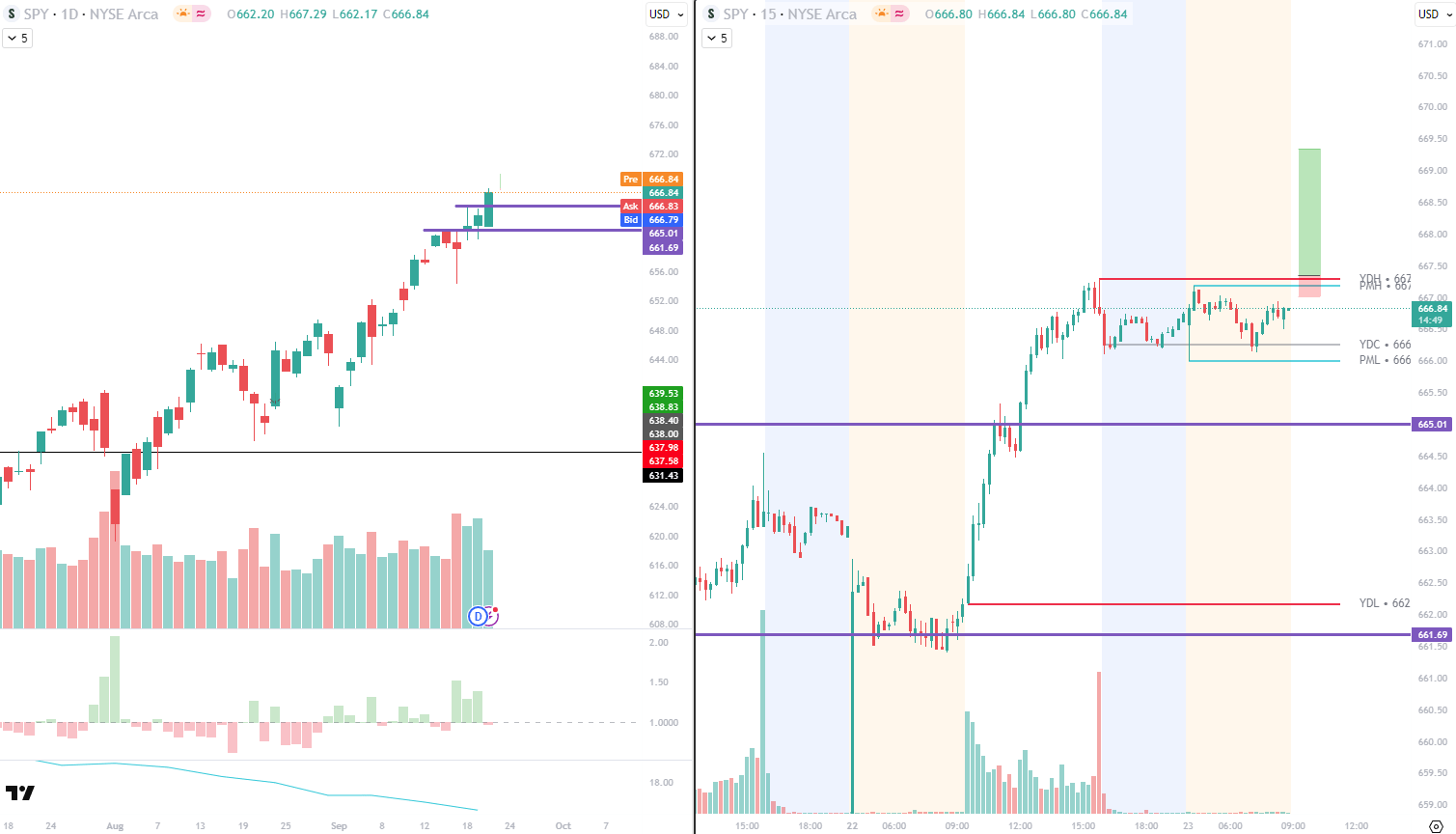 What I am watching: We continue to be bullish with all dibs being bought back up. Watching for a break above PDH for continued momentum higher, or a retracement back to 665 to see how we defend that level.